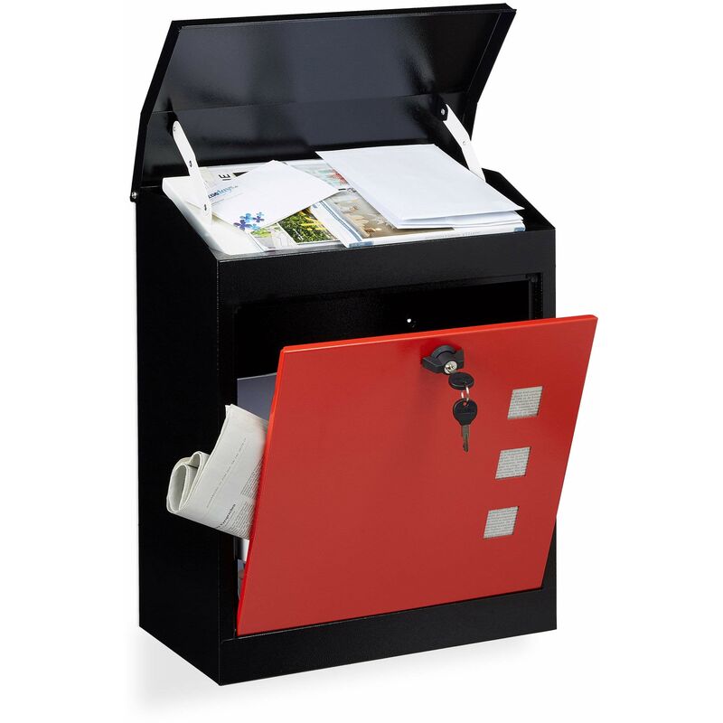 Descrizione Cassetta postale a muro grande, ideale per ricevere molta posta. Spazioso scomparto interno: contiene senza ostacoli grandi pacchi e pacchetti. La vostra posta è protetta dai malintenzionati grazie ad una lamina anti-prelievo che si solleva automaticamente quando il tettuccio viene aperto, bloccando l'accesso allo scomparto interno. Questa cassetta della posta è ideale per privati ma anche per aziende, uffici o hotel. Ci sarà spazio sufficiente per la vostra posta anche per lunghi periodi. Diversi colori disponibili. Cassetta postale in dettaglio - Misure complessive: HxLxP: 53x43,5x26 cm ca. - Grande fessura imbucalettere HxLxP: 10x35x21 cm ca. - Grande scomparto interno HxLxP: 40x36x22 cm ca. - Materiale: acciaio zincato e laccato - Colore: nero e giallo/verde/rosso/bianco - Peso: 8 kg ca. Cassetta della posta XXL a muro - Stile moderno, metallo - Design elegante e funzionale - Con 3 finestrelle per la visibilità - Con serratura e chiave di riserva inclusa Cassetta per