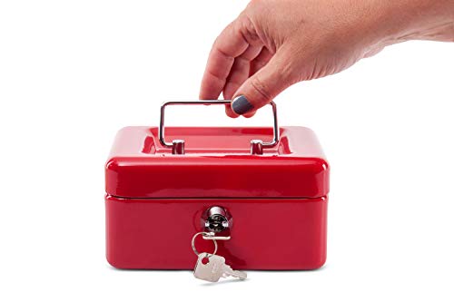 Cassetta di sicurezza con apertura per monete, dimensioni: 12,5 x 9,5 x 6 cm, colore: Rosso