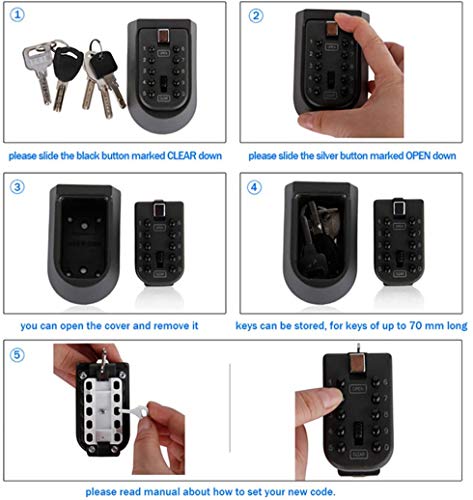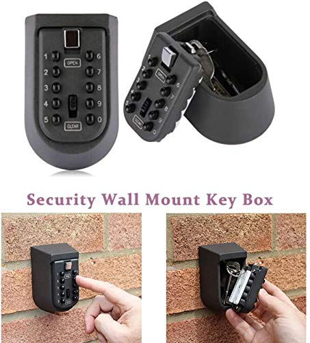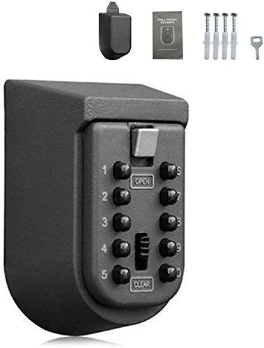Montaggio a parete con fissaggi in dotazione, cassaforte meccanica a 10 cifre, resistente alle intemperie con copertura in gomma rimovibile, la cassaforte a chiave può essere impostata con il codice scelto