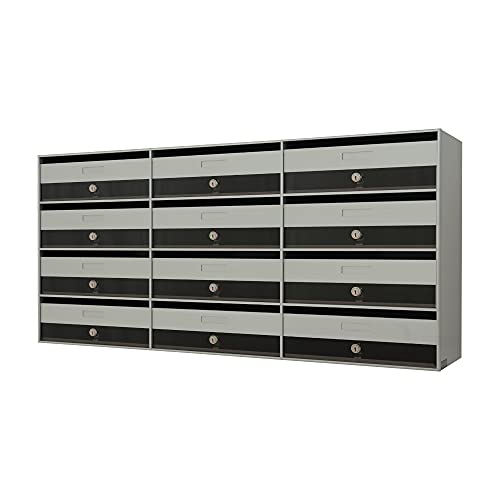 Cassette Postali per Interno 12 posti colore Argento in Alluminio e Acciaio Inox