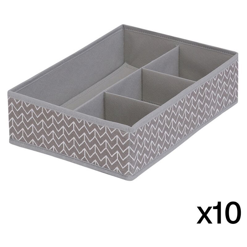 Caratteristiche del prodotto: Lotto da 10. Tessuto non tessuto geometrico con sfondo grigio. Dimensioni del prodotto: Lunghezza 23 cm x Altezza 9 cm x Profondità 33 cm. Peso netto unitario: 0,22 kg. Peso netto del lotto: 2,2 kg. Dimensioni del pacco: Pacco n°1: Altezza 9 cm x Larghezza 23 cm x Profondità 33 cm - Peso lordo: 2,2 kg.