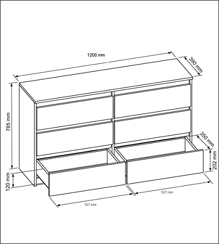 Cassettiera Bianco Lucido con 6 cassetti 120 cm, Armadio Camera da Letto, Corridoio, Soggiorno, H: 79 cm, L: 120,4 cm, P: 39 cm Cassettiera, Mobiletto Multiuso, Mobile Cucina