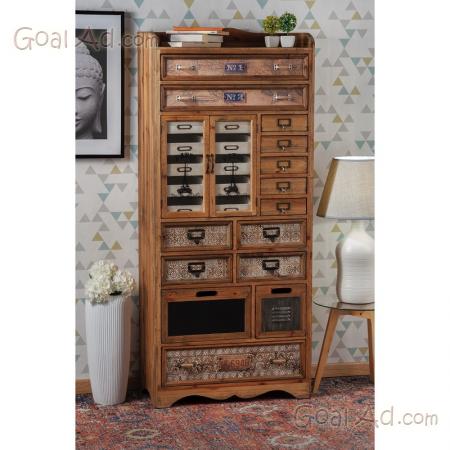 Cassettiera industrial style in legno con 24 cassetti