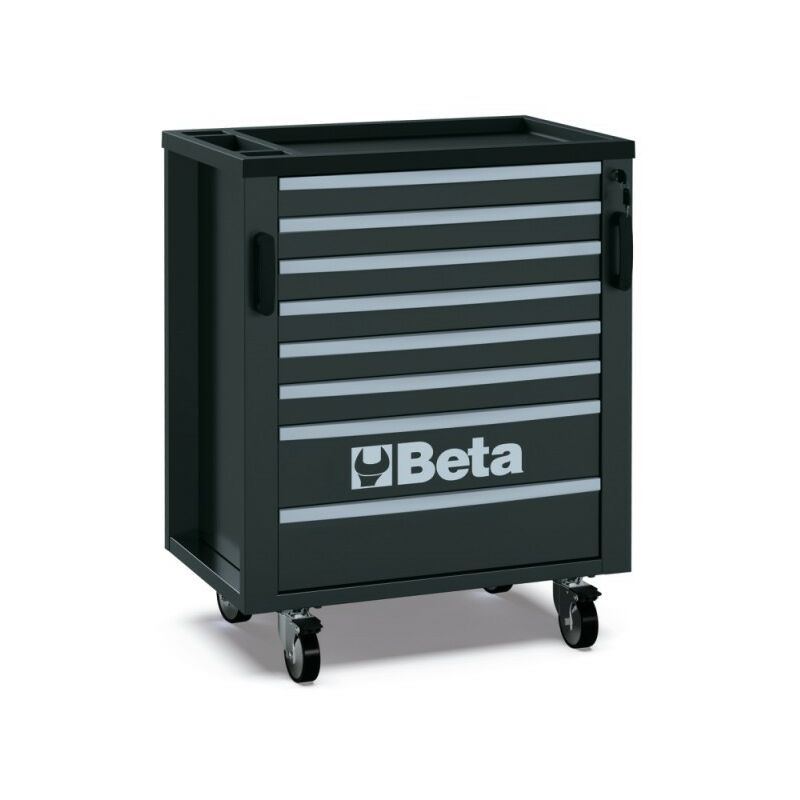 Cassettiera mobile con 8 cassetti per arredo officina RSC50 C8 Caratteristiche: • 8 cassetti da 588x367 mm, montati su guide telescopiche a sfera • 4 ruote girevoli Ø 100 mm (2 con freno) • Piano dei cassetti protetto da tappetini di gomma espansa • Serratura centralizzata frontale • Maniglie integrate nella struttura per una facile movimentazione • Possibilità di inserire in ogni cassetto fino a 4 vassoi morbidi in EVA o termoformati rigidi in ABS Peso: 59 kg