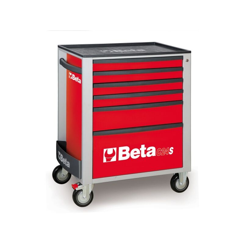 Cassettiera mobile con sei cassetti. caratteristiche principali: sei cassetti da 588x367 mm, montati su guide telescopiche a sfera: 4 cassetti altezza 70 mm 1 cassetto altezza 140 mm 1 cassetto altezza 280 mm piano dei cassetti protetto da tappetini di gomma espansa. quattro ruote 125 mm: 2 fisse e 2 girevoli (una con freno). serratura di sicurezza centralizzata frontale. capacit di carico statico: 800 kg. piano di lavoro termoplastico sul quale collocabile a misura una cassettiera c22s, c23s, c23sc e c23st portaflacone laterale integrato. possibilit di applicazione del portacarta 2400s-r/pc. Tipologia: Cassettiera mobile Dimensione: 740x445x955 mm N. cassetti: 6 Dimensione cassetti: Bxl 588x367 - h 70(x4)-140(x1)-280(x1) mm Portata cassetti: 25-30-35 kg Piano di lavoro: Termoplastico Portata piano: Max 800 kg Sistema antiribaltamento: No Serratura: Centralizzata frontale Accessori forniti: Portaflacone laterale integrato Maniglia: Laterale Predisposizione: Cassettiera