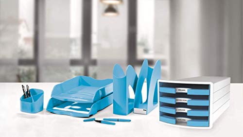 Cassettiera portadocumenti HAN IMPULS 2.0 - Design accattivante abbinato a una qualità eccellente. Con 4 cassetti aperti per DIN A4/C4, bianco-azzurro, 1013-54