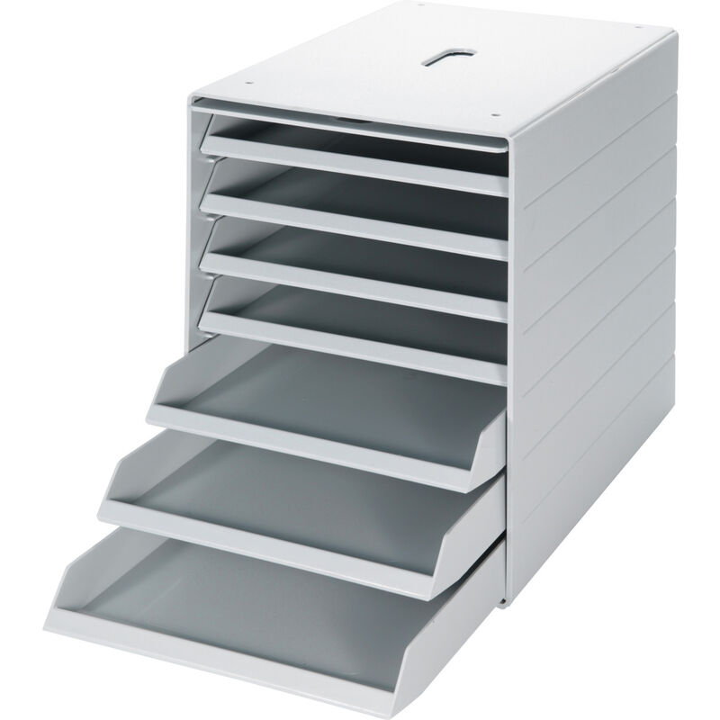 Cassettiera in polistirolo resistente agli urti. Uso: Formato cassetti: DIN C4. Con antina anteriore basculante e rientrante come protezione antipolvere. Maniglia integrata per agevolare il trasporto. Dati tecnici Colore grigio Tipo di prodotto Ripiano di smistamento Larghezza, mm 250 Altezza, mm 322 Materiale Polistirolo Profondità, mm 365 Materiale di montaggio fornito in dotazione no Adatto soprattutto per carta di formato DIN C4 Numero di vaschette estraibili 7 Maniglia sì Mensola chiudibile (protezione antipolvere) sì Spazio per annotazioni no Fissaggio a muro no