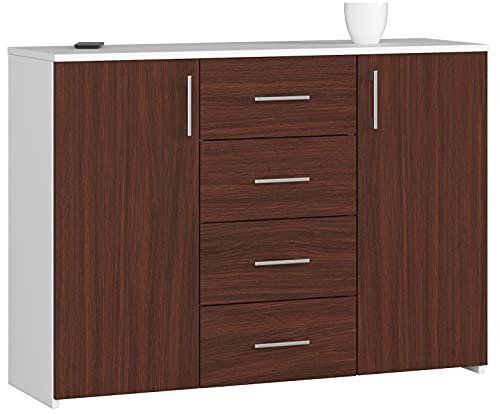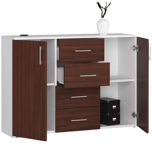 Un miracolo di spazio: la cassettiera con 4 cassetti e 2 vani laterali con ante si integra armoniosamente nell'arredamento della casa. Questo pratico mobile sarà perfetto in un soggiorno, in una camera da letto o in uno studio.
