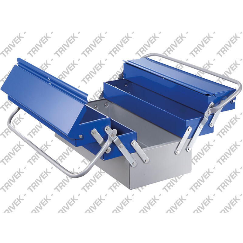 Composta da: 2 maniglie snodate, 5 scomparti su 3 livelli. E' richiudibile mediante lucchetto (non fornito). L'apertura è molto facile. Dimensioni (con maniglie) 535 mm: L.575 x P.250 x H.230 mm. Dimensioni interne vano 535 mm: L.518 x P.200 x H.98 mm. Dimensioni interne scomparti 535 mm: L.526 x P.100 x H.55 mm.