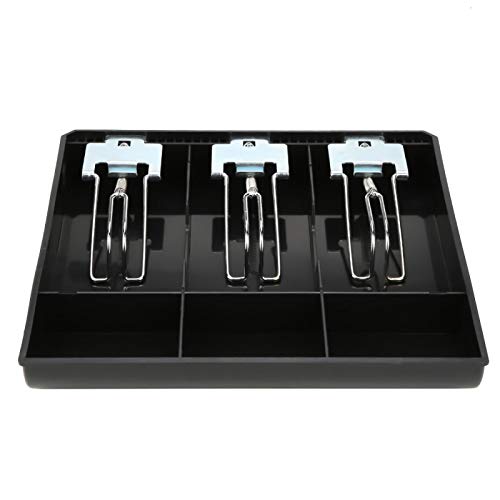 Cassetto per cassa, cassetto di cassa con inserto per registratore di cassa, vassoio di ricambio per cassa, tre scatole con clip in metallo (nero)