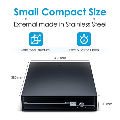 Cassetto Cassa Piccolo In Ferro Porta Expr Banconote e Monete (euro) Apertura Automatica POS Stampante RJ e Registratore di Cassa. 33 x 38 cm POS VALLEY