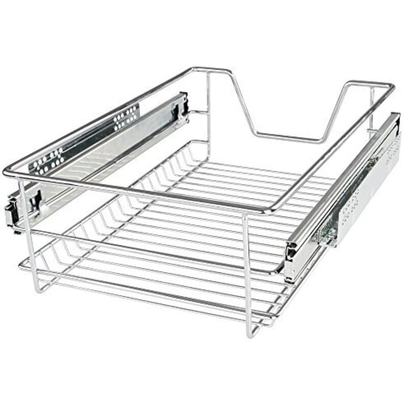 Aggiungere oggetti aggiuntivi di stoccaggio nella vostra casa è un modo eccellente per sfruttare al massimo lo spazio disponibile. Che si tratti di indumenti in camera da letto o di frutta e verdura in cucina, questo cassetto rimovibile per un armadio è un'opzione pratica e compatta. Realizzati in resistente metallo cromato e con una capacità di carico di 20 kg, i nostri cassetti con guida telescopica offrono la migliore soluzione possibile per qualsiasi spazio di archiviazione. Cassetto in filo metallico con guida telescopica Facilita la sistemazione degli utensili casalinghi Capacità di carico: max. 20 kg Incluso materiale di montaggio Set di 5 cassetti Per mobili di larghezza di 40 cm