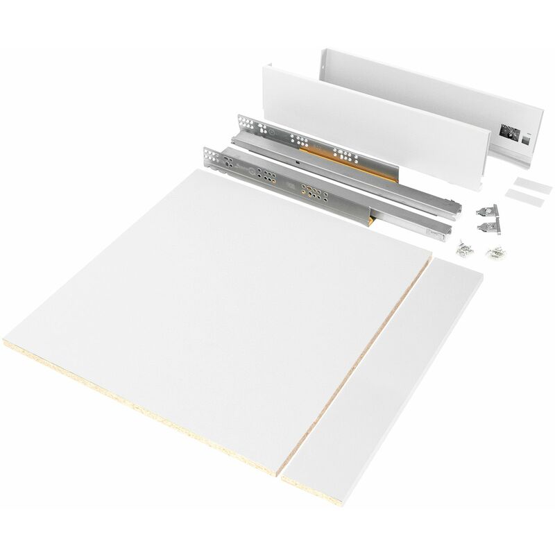 Kit Cassetto Per Cucina O Bagno Vertex Di A 93 mm Con Pannelli Inclusi Larghezza 600 Verniciato Bianco V Emuca Kit per cassetto cucina e bagno con tutti gli elementi necessari per il suo assemblaggio.È la soluzione ottimale per i mobili della tua cucina, bagno o armadio con un design elegante in colore grigio antracite e bianco . Ogni kit è composto da tutti gli elementi necessari per il montaggio di un cassetto esterno di 93mm di altezza e profondità 500 mm con varie larghezze del modulo . Include: due sponde laterale, un set di guide con chiusura soft, un set di coperchi di rivestimento, pannelli inferiore e posteriore e i fissaggi per la parte anteriore del cassetto. Avrai semplicemente bisogno del pannello frontale con le dimensioni necessarie del cassetto. Le sponde laterale in metallo sono realizzate in acciaio con finitura verniciata grigio antracite e bianco, consentono di regolare la parte anteriore del cassetto ± 2mm in verticale e ± 1mm in orizzontale . Le guide sono di