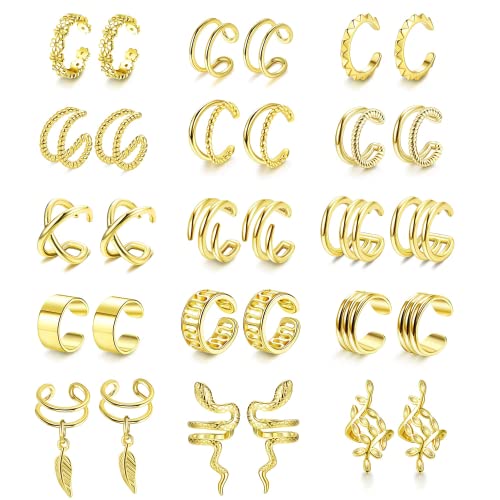 ♥ SET DI CUFFIE IN ORO ♥ Vieni con 10/12/15 paia di polsini per le orecchie di design diverso, inclusi orecchini con polsino a fiore, croce x personalizzata, cupola a forma di U classica, involucro alla moda a 3 file, orecchini con polsino cavo, orecchini con cartilagine CZ e involucri di serpente. Perfettamente come polsino dell'orecchio, anello del trago, clip della cartilagine dell'elica e anello del naso finto, prova un paio diverso ogni giorno.