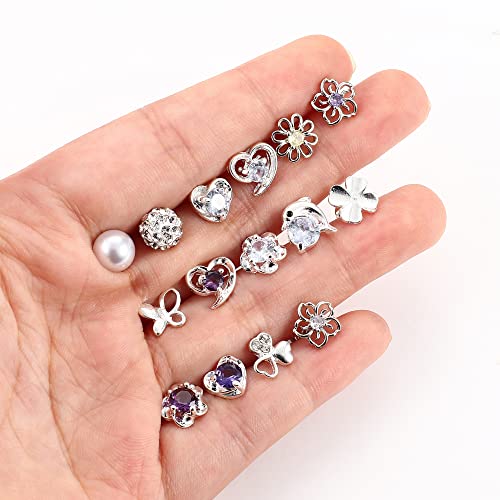 【ORECCHINI IN ARGENTO 925】In questo articolo riceverete 15-20 paia di orecchini in argento sterling in un unico ordine, tra cui orecchini a forma di girasole, orecchini a sfera con zirconi, orecchini con perle e orecchini a forma di cuore;
