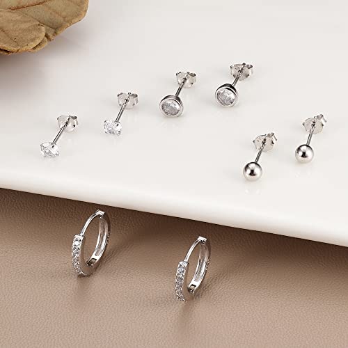CASSIECA 4 Paia di Orecchini a Bottone in Argento Sterling 925 per Donna Orecchino Pallina Cubic Zirconia Orecchini Anallergici Cartilagine Helix Ear Piercing Orecchino Argento 925