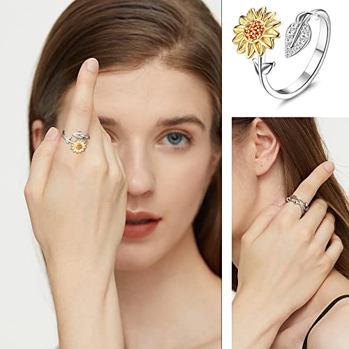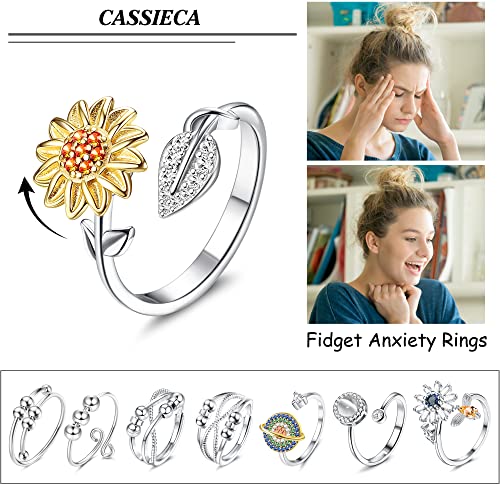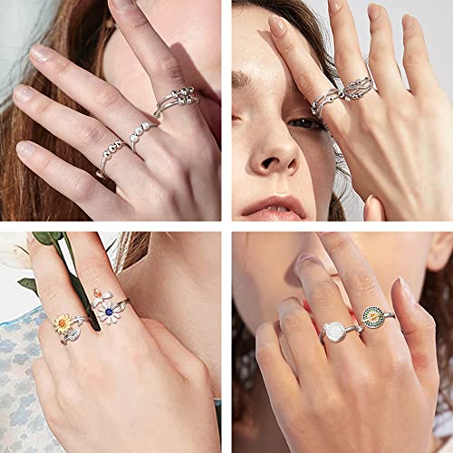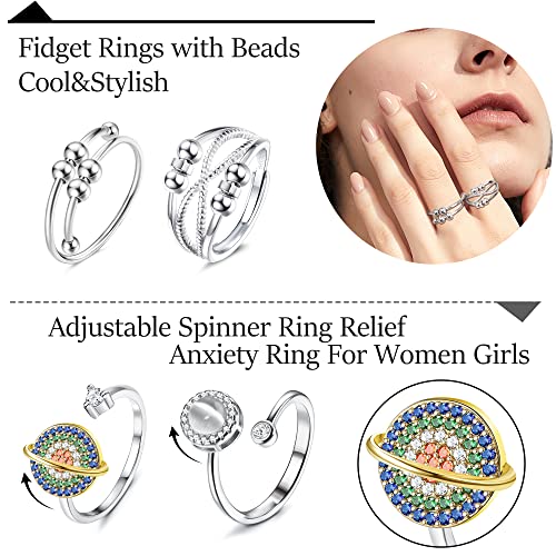 CASSIECA 9 Pezzi Ansia Spinning Ring con Perline per Donne Fidget Peace Rings for Ansia Zircone Pianeta Fiore Greyopale Ring Antistress Spinner Ring Anelli a Fascia Regolabile Ansia Relief