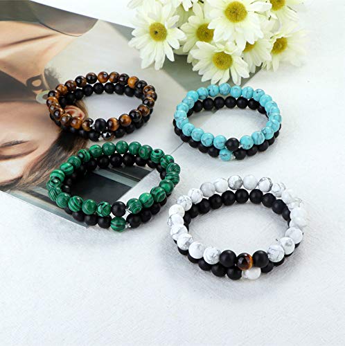 CASSIECA 8 pezzi 8mm Bracciale Pietra Palline per Uomo Donna Occhio di Tigre Turchese Braccialetto Bianco Nero Pietre Bracciale Elastico Set