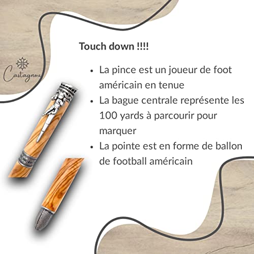 CASTAGNOU - Penna | FOOT US | legno d'ulivo - idea regalo originale e unica - Artigianato tornito e assemblato a mano in occitania - made in France - confezione regalo uomo donna