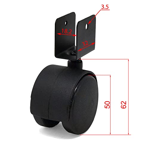 Castors Wheels - Kit 4 Ruote gemellate, 2 con freno, girevoli con staffa a U per Mobili 50mm in nylon -rotelle piroettanti - Doppia ruota per scorrevolezza e manovrabilità - portata max 180 kg