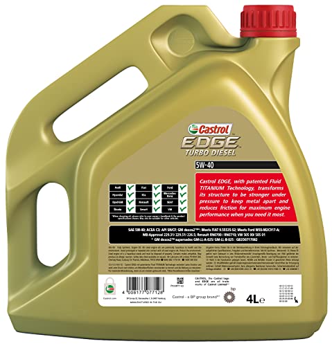 Castrol Edge Turbo Diesel 5 W di 40 Titanium Fst, W-30 Olio Motore, 4 L, Litri