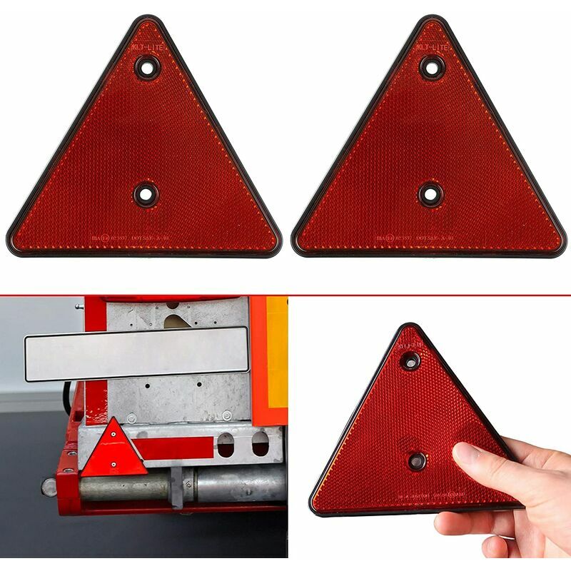 DIMENSIONE STANDARD - 15 x 15 x 15 cm - Ogni lato del riflettore triangolare misura 15 cm - Fare riferimento alle immagini delle dimensioni per ulteriori informazioni [DISTANZA STANDARD VITE - 70 mm] La distanza standard imbullonata per tutti i tipi di rimorchi misurano 70 cm: i nostri triangoli catarifrangenti rossi sono il sostituto perfetto per catarifrangenti per rimorchi e trattori [RETRO - SINISTRA E DESTRA] Se uno dei catarifrangenti del triangolo rosso di emergenza posteriore si rompe, è necessario sostituire il catarifrangenti rimorchio destro e sinistro per assicurarsi che corrispondano [IL PACCHETTO COMPRENDE] 2 kit catarifrangenti per rimorchi, semirimorchi, veicoli a motore adatti come automobili, camion, trattori, roulotte, camper, rimorchi per cavalli, ecc. - NESSUNA vite inclusa nella confezione Il colore rosso Quantità consegnata: 2 pezzi