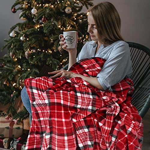 Catalonia Coperta Scozzese, Coperta Soffice di Bufalo, Coperta Invernale Reversibile in Microfibra di Peluche Calda di Natale per Divano Letto, 150x130 cm, Plaid Rosso