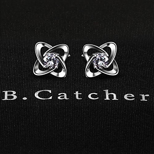 B.Catcher Orecchini a bottone con orecchini a clip in argento sterling 925, orecchini in zirconi cubici