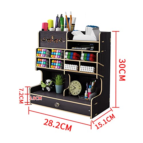 Catekro Scatola Portaoggetti Scrivania, Portaoggetti Da Scrivania, Organizzatore Da Scrivania, Portaoggetti Da Ufficio Con Cassetto Per Casa, Ufficio E Scuola (Medio-Nero)