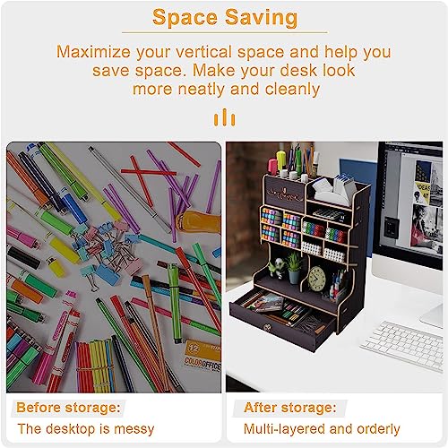 ✔ Ultra capacità: portaoggetti da ufficio con cassetto misura 28.2*15.1*30 cm, con 21 scomparti, 16 portapenne, 4 pedana aperta e 1 cassetto, può contenere tante cose con un ingombro minimo.
