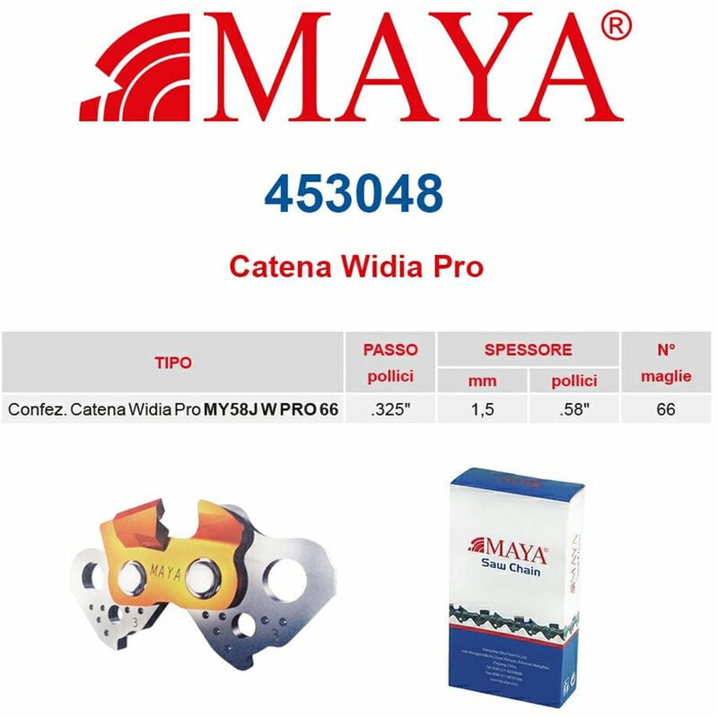 Catena confezionata in Widia PRO .325 1.5 mm - .058 66 maglie con antirimbalzo Codici originali MAYA