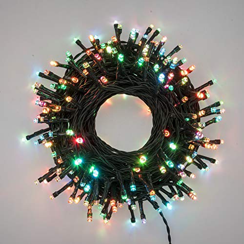 Catena CRAZY RGB 200 LED 5mm High Brightness Giochi di luce Automatici con effetto Flash RGB Trasformatore Esterno Cavo Verde 4+20m