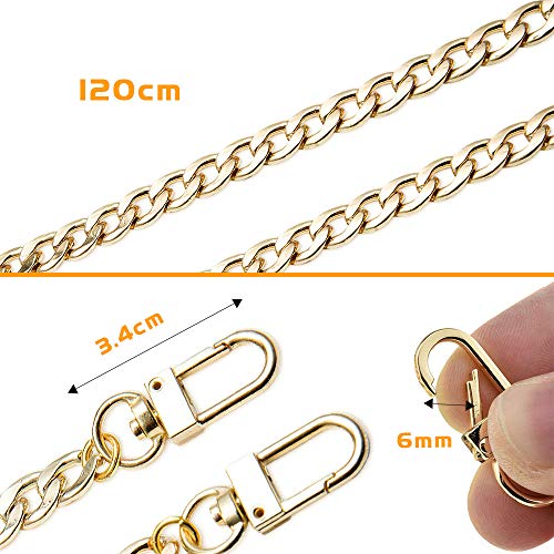 Catena dorata con fibbie, tracolla in metallo di ricambio per portafogli e borse, da 120 cm, da donna