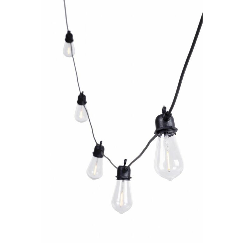Pvc e lampadina. lampadine a led in plastica (6x), singolo filamento (s45, ø45), incluse. cavo nero, lunghezza totale 6.4mt. distanza tra una lampadina e l'altra: 50cm. distanza tra l'ultima lampadina e l'adattatore: 3.6m. cavo terminale 30cm. prolungabile fino a 5 pz-catene. uso interno ed esterno,ip44.