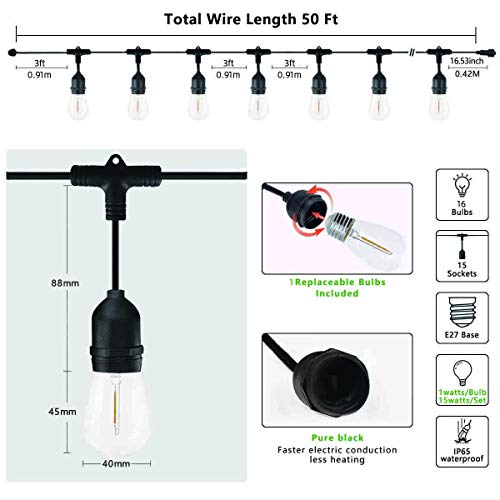 Catena di Lampadine Bomcosy Catene Luminose LED 50FT/15M S14 Lampadine Globe Luci Stringa IP65 Catena Luminosa per Tende da Cortile Mercato Cafe Portico Partito Luce di Lampada di Esterni Interni