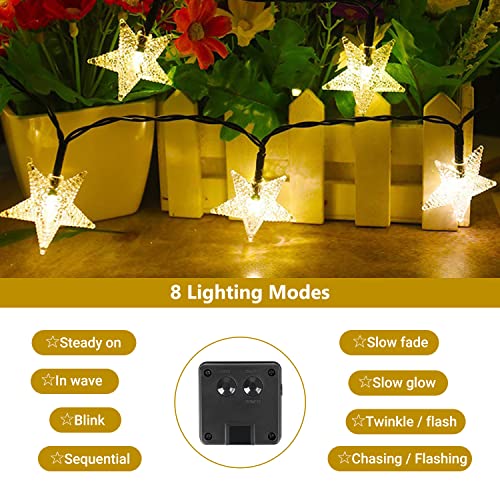 Aggiornamento e risparmio energetico: catena luminosa a energia solare per esterni, con 50 LED super luminosi, con 5 m di lunghezza e cavo di 3 m, la lunghezza totale è di 8 m. È lunghezza sufficiente per qualsiasi interno ed esterno. Con celle solari ricaricabili da 600 ml, queste catene di luci solari hanno un maggiore tasso di conversione dell'energia, che carica la luce durante il giorno per 6-8 ore e fornisce 8-12 ore di luce di notte.