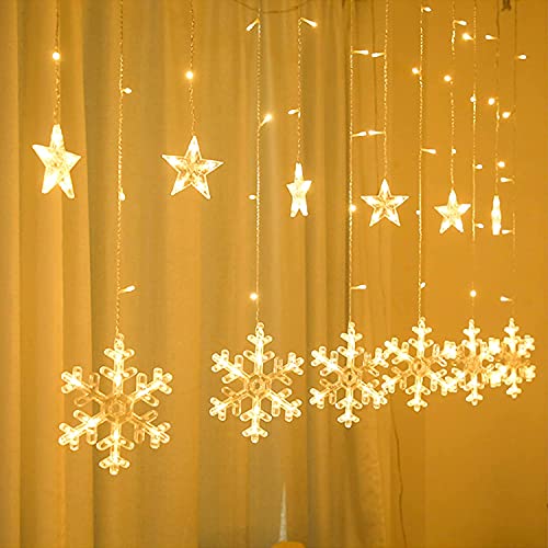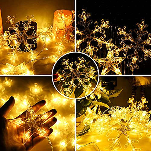 Catena di luci a forma di fiocco di neve, 138 LED, per camera da letto, funzionamento a batteria, 2,5 m, 8 modalità con telecomando intelligente per la casa, festa di Natale (caldo)