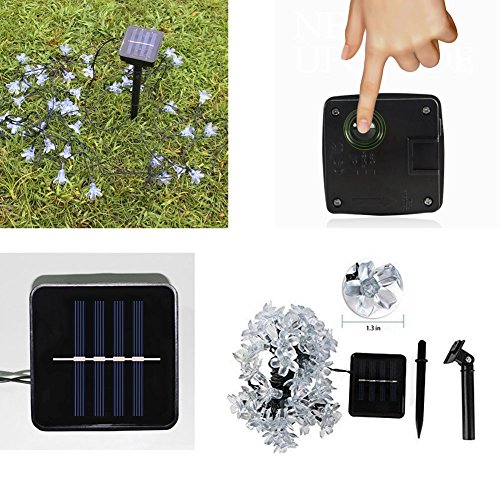 Catena luminosa decorativa a energia solare, 7 m, 50 lucine a forma di fiori di ciliegio, luci a LED, impermeabile, per l'esterno, la casa, il giardino, il prato, in occasione di matrimonio, Natale, feste, Lilla, Kirschblüten 0.20W 2.00V