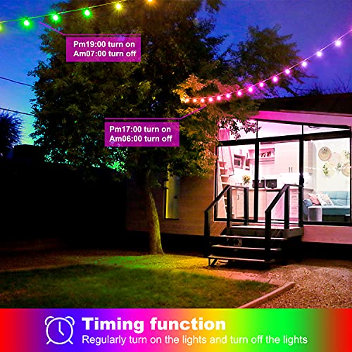 RGB Catena Luminosa Esterno, 14m/46ft Catena Luci Stringa Impermeabile con 16 Lampadina, 256 modalità, Lucine da Esterno e Interno, Luci Decorazione per Natale Terrazza Festa Giardino Matrimonio