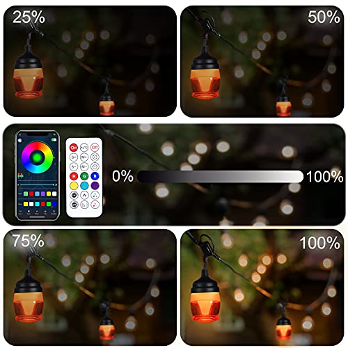 Catena Luminosa Esterno Bluetooth LED RGB Luci Stringa 10M Cadrim 12 Lampadine APP + Telecomando 256 Modalità Dinamiche Luminosità e Velocità Regolabile 6 Timer IP65 per Giardino Feste Terrazza Gazebo