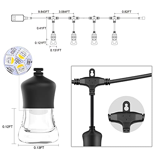 Resistente alle intemperie e resistente: queste luci stringa per esterni sono commerciali IP65 resistenti alle intemperie. Il materiale isolante può proteggere il filo dal caldo inverno, dal sole, dal vento, dalla pioggia, dalla neve e dall'umidità. Il cavo flessibile resistente resiste all'usura dell'uso interno ed esterno