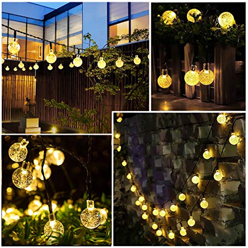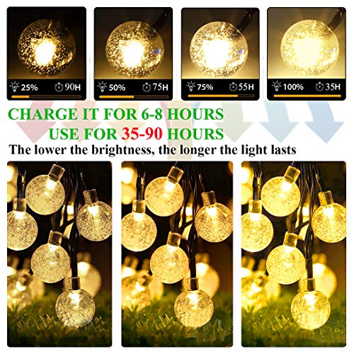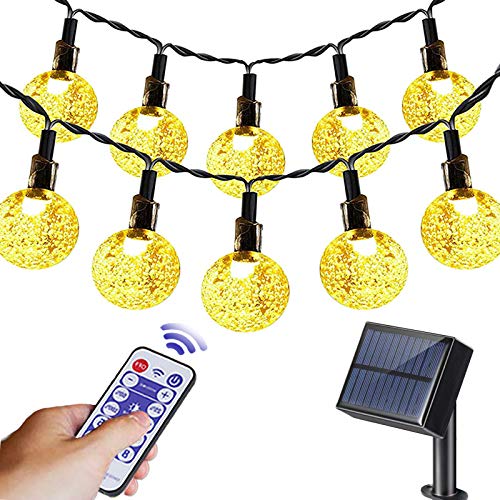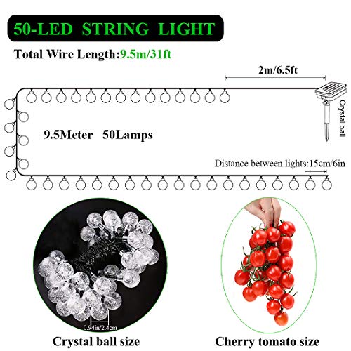 Catena Luminosa Esterno Solare, Luce Stringa 50 LED 9m Illuminazione 35-90 ora Luce Stringa Solare di Crystal Globe Impermeabile 8 Modalità per Giardino, Albero, Matrimonio, Festa, Pergole, Natale