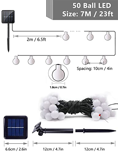 【50 LED Globe Luci】 Con 50 luci a sfera a LED di alta qualità, le luci fatate lunghe 7 m hanno un angolo di visione costante a 360 gradi che illuminano in ogni direzione. Le colorate luci del globo solare creano un'atmosfera fantastica per il tuo giardino, patio, cortili, matrimoni, feste, Natale.