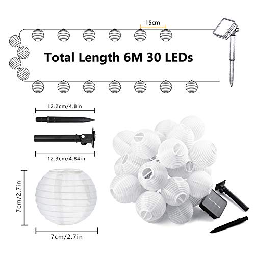 【30 LED Lanterne Luce a Energia Solare】Le luci solari di sono lunghe 6m con 30 LED lanterne, realizzate in nylon di alta qualità, il diametro è di 7 cm. L'illuminazione morbida aggiunge un'atmosfera calda e affascinante alla vostra vita quotidiana e altre celebrazioni.
