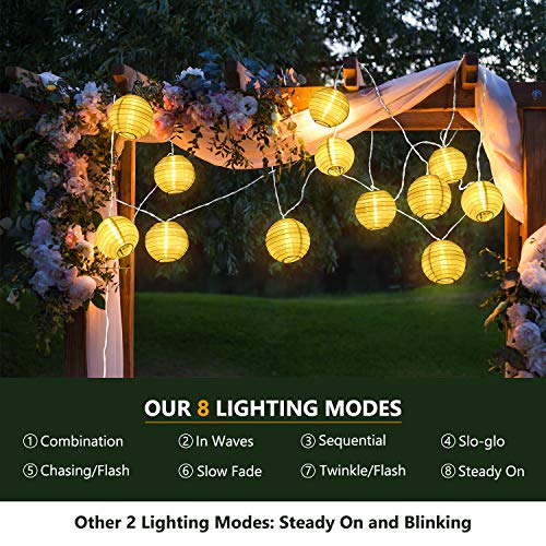 Catena Luminosa Lanterne Esterno, BrizLabs 6m 30 LED Lanterne Solari Giardino Luci Esterno Impermeabile 8 Modalità Decorative Stringa di Luci per Natale Terrazza Balconi Patio Festa, Bianco Caldo