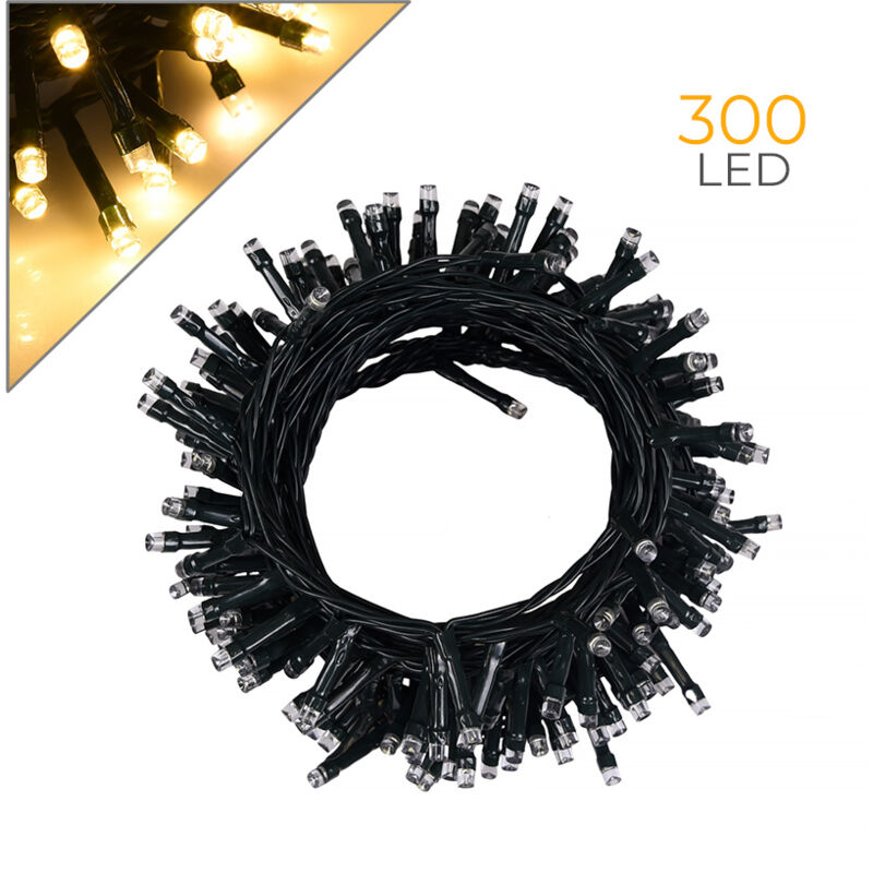 CATENA LUMINOSA DA 300 LED A LUCE GIALLA 15M CAVO VERDE IDEALE PER INTERNI ED ESTERNI - 8 MODALITA' DI ILLUMINAZIONE La magia del Natale si accende con la nostra esclusiva catena di luci da 300 LED a luce gialla, estendendosi per 15 metri di pura brillantezza. Progettata con un elegante cavo verde, questa catena LED non è solo un accessorio luminoso, ma un vero e proprio elemento d'arredo che trasforma qualunque ambiente in un luogo incantato. La lunghezza di 15 metri consente di avvolgere spazi grandi e piccoli, sia interni che esterni, creando un'atmosfera calda e accogliente ovunque si desideri. Grazie alla tensione di alimentazione di 31V e al trasformatore a bassa tensione incluso, queste luci sono sicure al tocco e riducono il rischio di surriscaldamento, garantendo un uso sicuro anche per lunghe sessioni di illuminazione. Ogni LED, del tipo F5 mm, è posizionato a una distanza di 5 cm lungo il cavo, creando un effetto luminoso uniforme e continuo che non stanca la vista. Il
