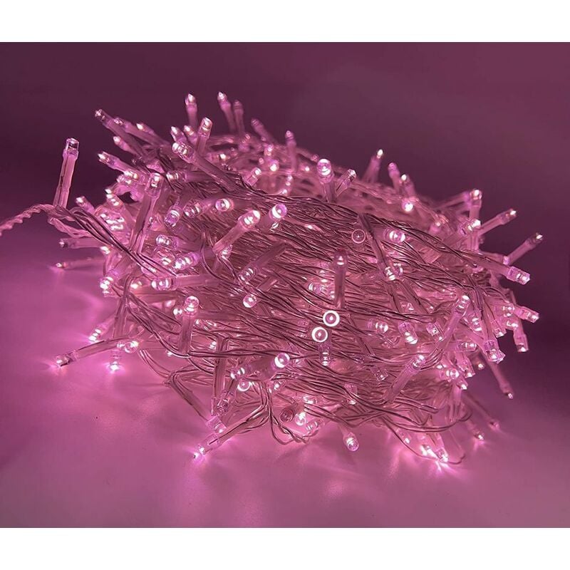 Catena Luminosa di 25 metri con 500 LED luce ROSA PINK CON CAVO TRASPARENTE, stringa di luci LED di Natale per un totale di 500 lampadine a LED. Cavo di rame rivestito in PVC di colore TRASPARENTE impermeabile IP44, cavo di alimentazione lungo 3 metri, attacco spina F5 5 mm, consumo massimo 6W. Per decorazioni natalizie addobbi casa esterno interno e luci per l'albero di Natale. Decorazione perfetta per San Valentino, Natale, feste e matrimoni. Idea per decorazione di esterni e addobbi di Natale. Puoi creare stringhe di luci e forme grazie al cavo flessibile. 8 Giochi di luce diversi: Cambio automatico, onde, lampeggiamento, lucciola, dissolvenza singola/doppia, scintillio di stelle, lampeggiamento e scintillio di stelle. Scegli le tue modalità preferite in base alle diverse occasioni e al tuo gusto personale, controller di selezione incluso, con tasto di selezione dei giochi di luce e chip di memoria con l'ultima modalità selezionata. Festeggia feste, feste di compleanno, addobba