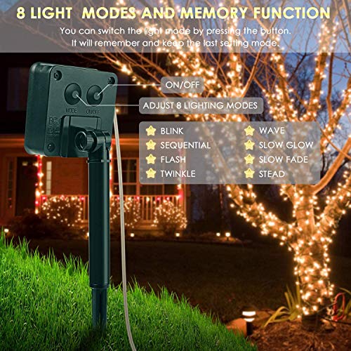 Catena Luminosa Solare da Esterno, 22m/ 72 piedi 200 LEDs 8 modalità Decorazioni per esterni Luci a stringa fatate impermeabili per giardino, patio, Natale, alberi, interno decorativo - Bianco caldo