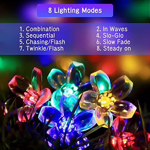 Catena Luminosa Solare, 12M 100 LED Fiori di Ciliegio Luci Solari Esterno 8 Modalità IP65 Impermeabile Luci Decorative per Natale Esterno Interno Giardino Festa Natale Halloween Decorazione
