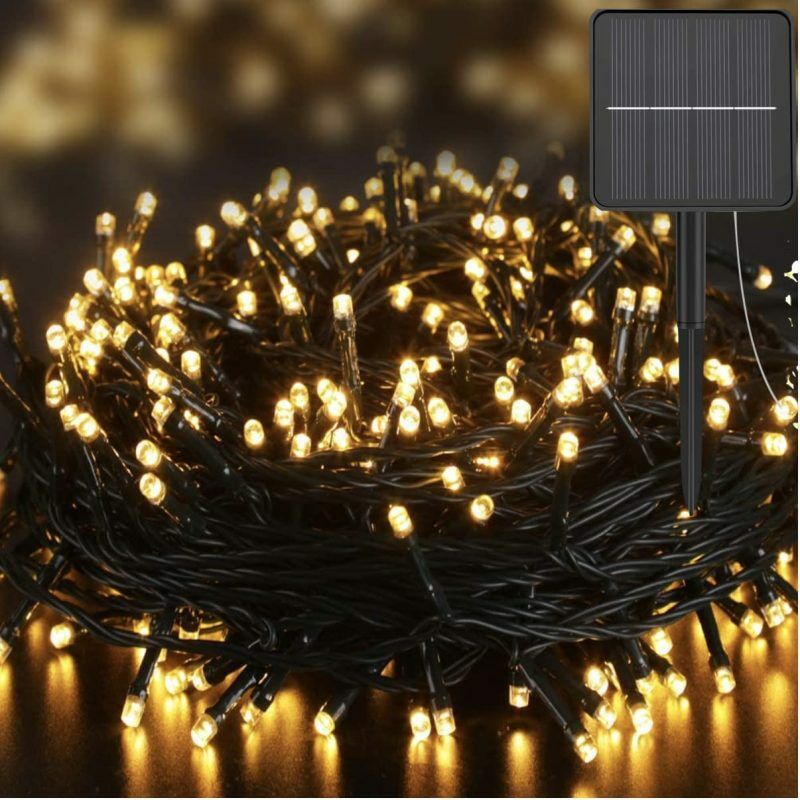 Catena luminosa Stringa Luci LED 8 Giochi di Luce ricarica a Energia solare Funzione di Memoria decorazione Natale per Esterno o Interno, matrimoni, feste 7M 100 LED Luce Bianca Calda (Luce Calda) ⭐【8 GIOCHI DI LUCE CON SCATOLA DI COMANDO】 Catena Luminosa con 8 diversi giochi di luce e scatola per selezionare l'effetto luci. Stringa di luci LED per un totale di 100 lampadine a LED con scatola di comando, per decorazione e addobbi interno esterno. Decorazione perfetta per San Valentino, Natale e matrimoni. Luce combinata, a onde, in sequenza, slow glow, ecc. Ideale per decorazioni Natalizie, cerimonie, feste, in casa e in giardino ⭐【FUNZIONE MEMORY PER GLI EFFETTI DI LUCE】 Puoi selezionare la modalità dell'effetto di luce per la stringa luminosa, e una volta selezionata, le luci LED funzioneranno già con il gioco di luce programmato. Non è necessario preoccuparsi di re-impostare, inoltre è programmato per l'accensione e lo spegnimento automatico! ⭐【RICARICA A LUCE SOLARE】 Non